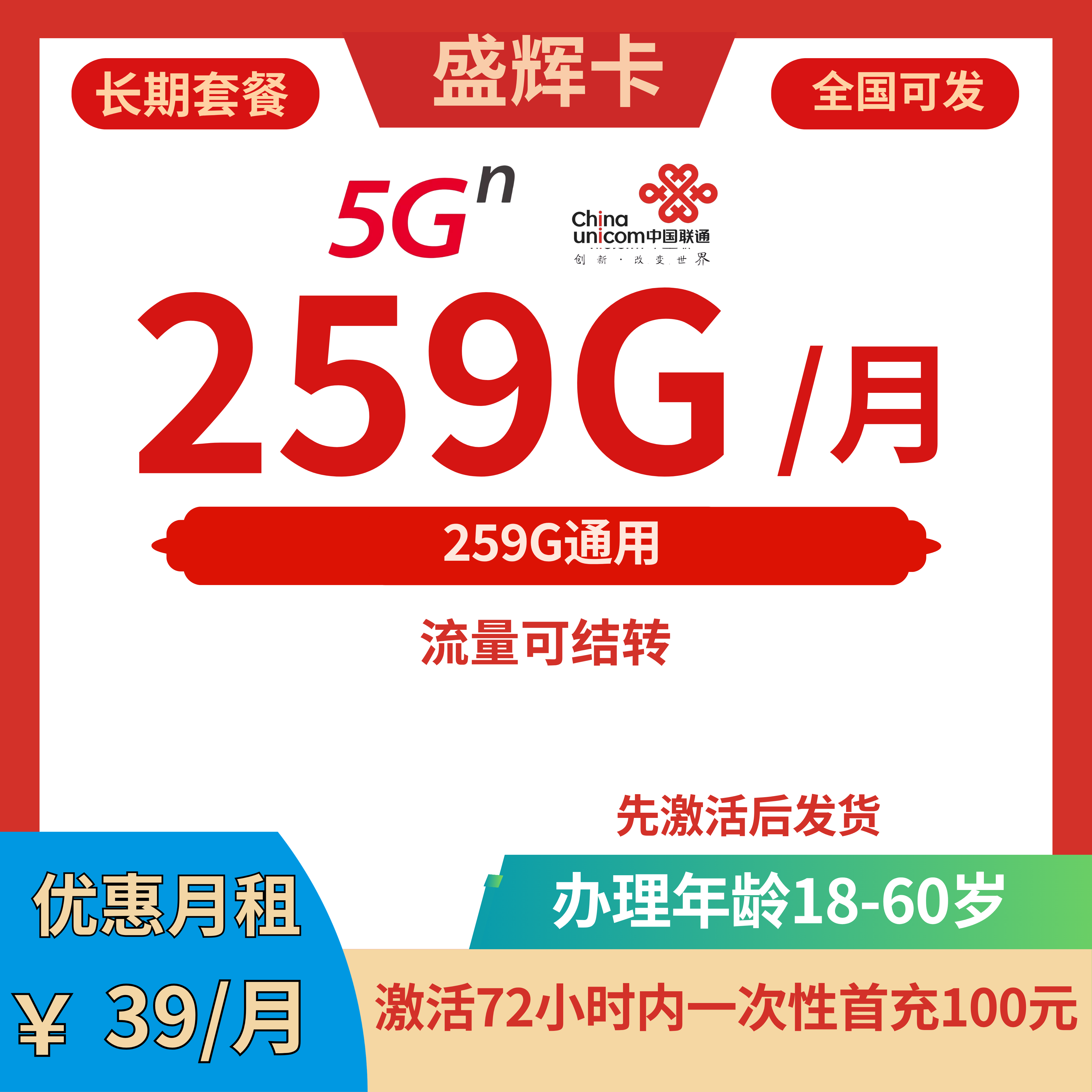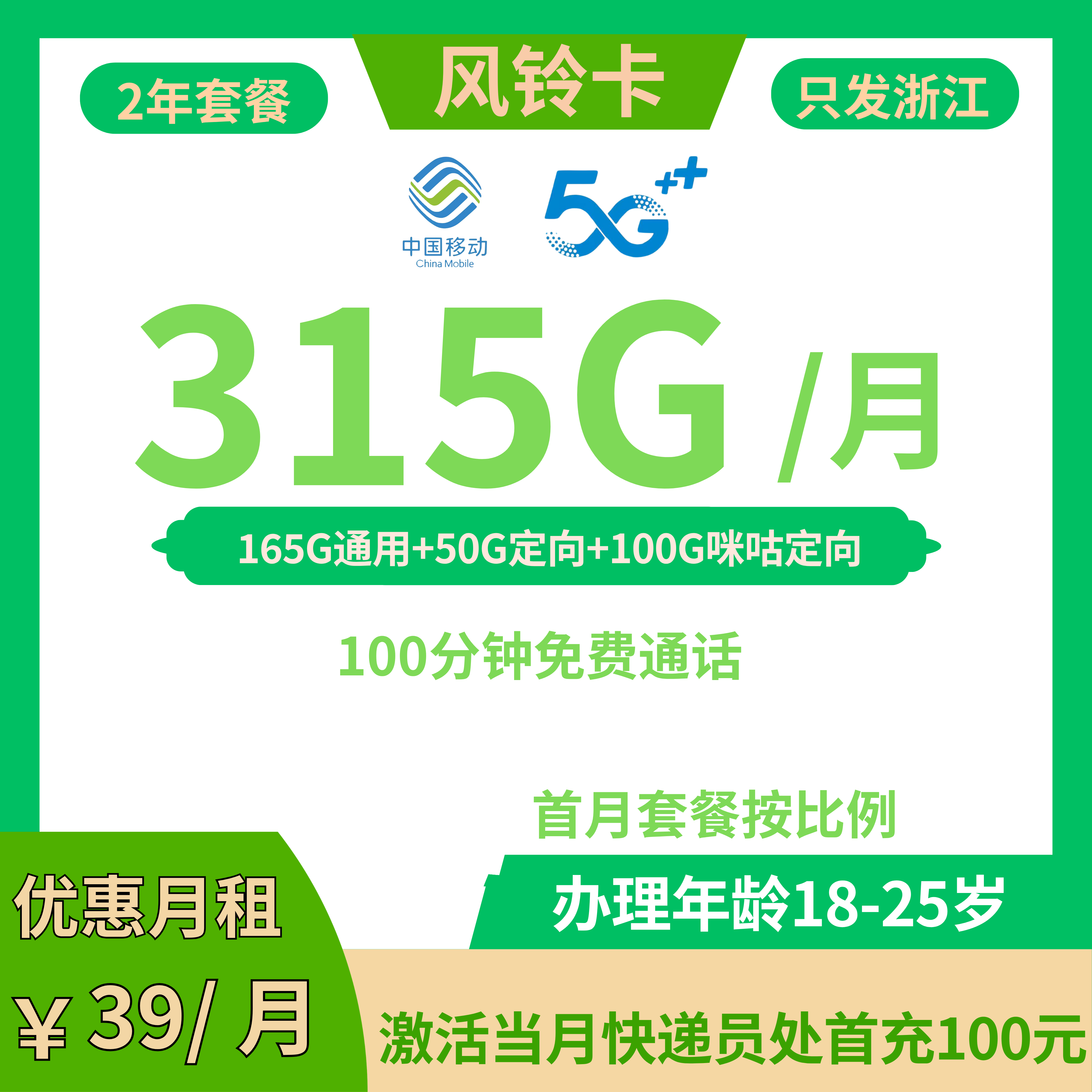 39元/月享165G通用流量+50G视频定向+100G咪咕系定向
