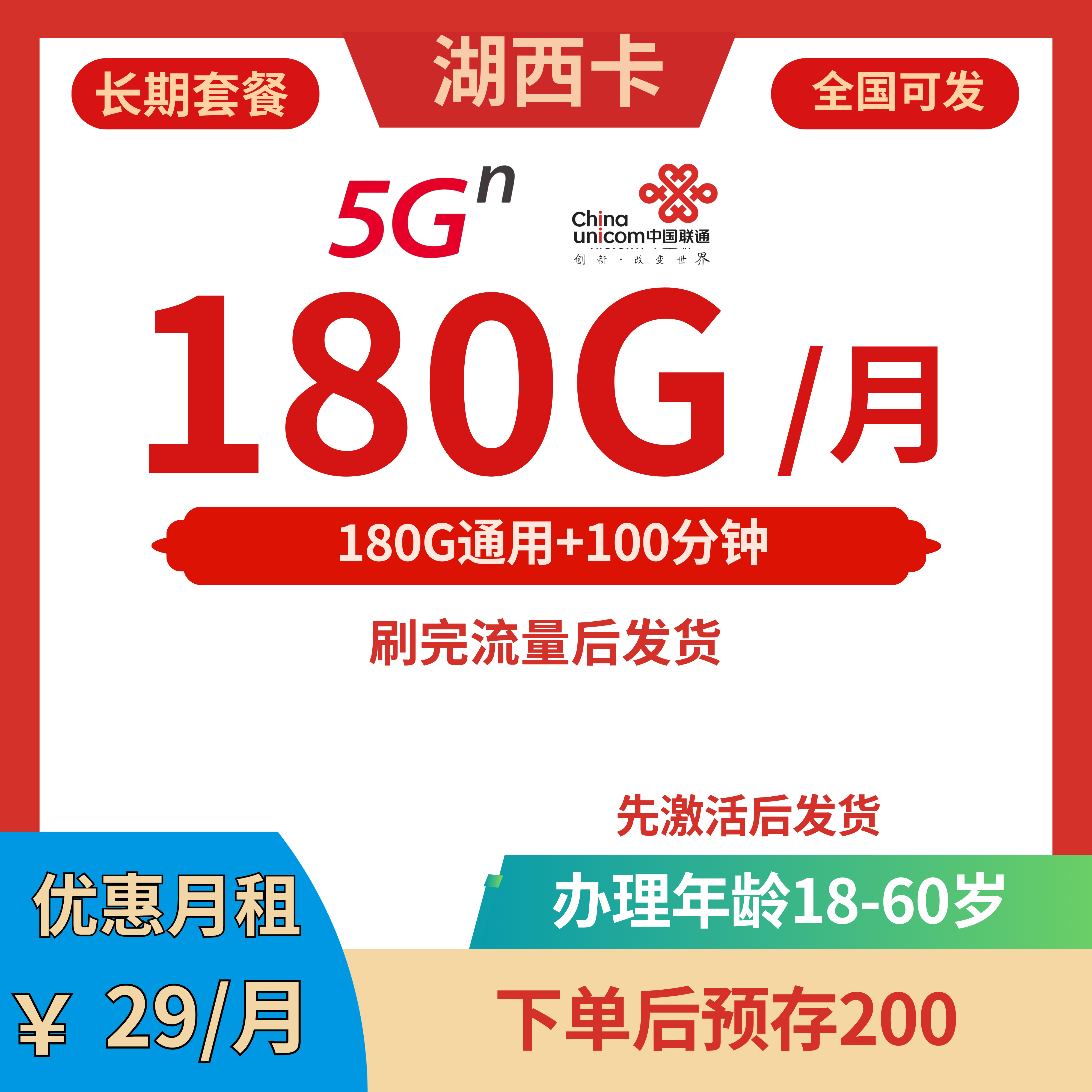 联通红枫卡39元180G通用+100分钟【只发湖南】